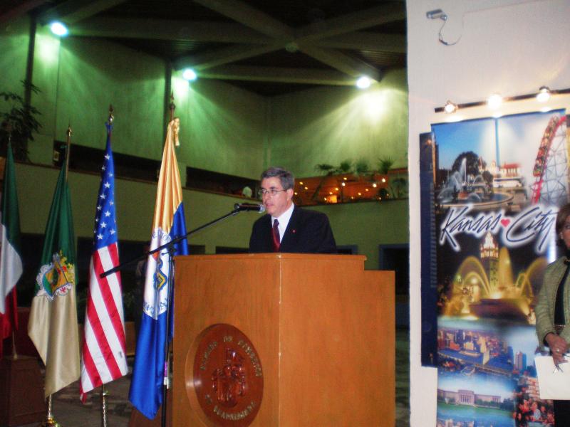 Mr. Jose Somoza addressing the delegations at the City of Zapopan, Jalisco, Mexico in an opening ceremony for a City of Kansas